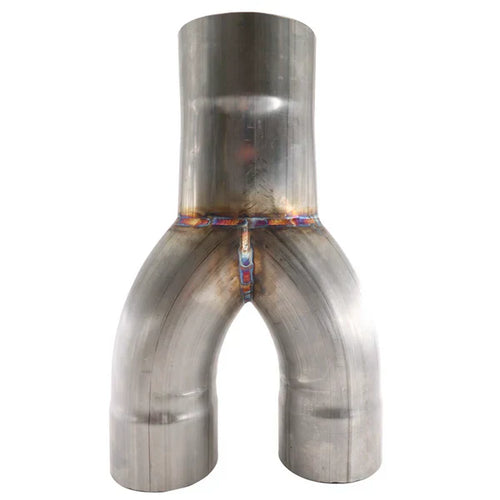 A Y-pipe merges the two exhaust banks into a single stream before splitting...